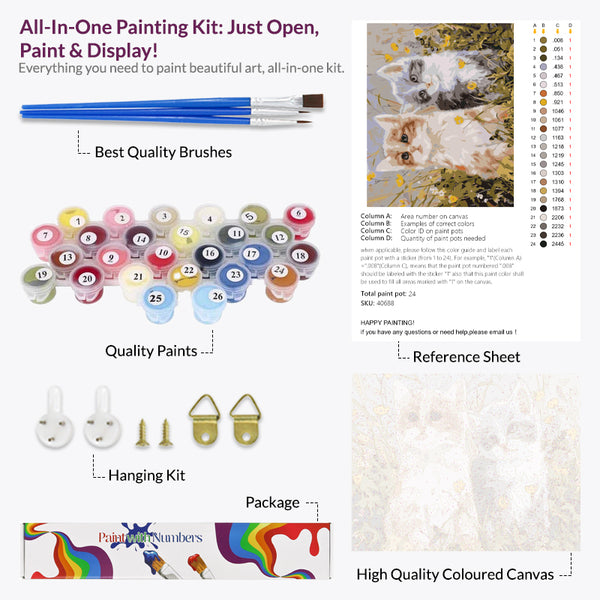 Unlock the creativity within you and let it explore the artistic world. This Two Little Kittens paint by numbers will be admired for years. Frame this stunning piece of art, hang it on your favorite wall and let it be the décor of your home. Feel the satisfaction of your favorite painting coming to life.